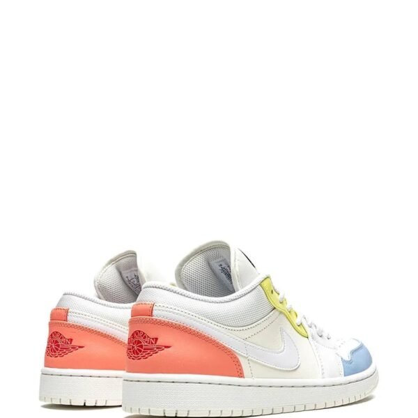 Released in 1985, the Air Jordan 1 Low stands out for its bold colour-blocking, design. This pair comes in a white, blue, orange and yellow colourway and, here, the “NIKE AIR” branding on the tongue has commonly been replaced with Jumpman logos, while the line’s wings insignia has moved to the lower heel from the ankle tab.