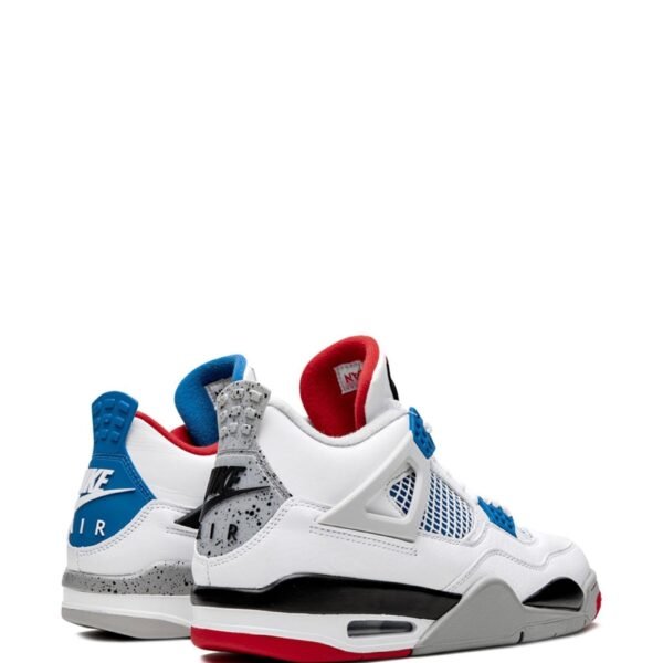 Supplied by a premier sneaker marketplace dealing with unworn, already sold out, in demand rarities. Each product is rigorously inspected by experienced experts guaranteeing authenticity. The Air Jordan 4 “What The” combines colourways of some of the most timeless Jordan 4s into one. The “What The” release celebrates the 30th Anniversary of the Air Jordan 4 model. The “White Cement,” “Military Blue,” “Fire Red,” and “Black Cement” colourways all receive love and are featured on parts of both pairs of the design. A white leather base covers the mid-panel, toe, and heel of both sneakers. The left pair features a black base beneath white netting on the mid-panel. Fire Red eyelets appear on the design, with a black triangular wing and embroidered Military Blue Jumpman logo covering the tongue. A blue heel tab with white Nike Air branding on top puts the finishing touches on the left shoe. The right shoe features a blue base beneath the white netting, blue eyelets, and a black-based red Jum