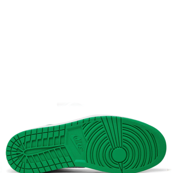 The Air Jordan 1 Retro High OG ‘Lucky Green’ dresses the iconic silhouette in familiar color blocking that mirrors one-half of the 2009 Air Jordan 1 ‘Defining Moments Pack,’ inspired by Michael Jordan’s 63-point playoff performance against the Boston Celtics in 1986. The high-top sports a smooth leather upper, featuring a white base with contrasting hits of black on the forefoot overlay, Swoosh, and padded collar. Lush green accents land on the heel overlay and ankle flap, marked with a retro Wings logo on the lateral side. The shoe earns its OG designation with a woven Nike tag atop the breathable nylon tongue.