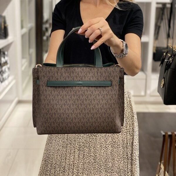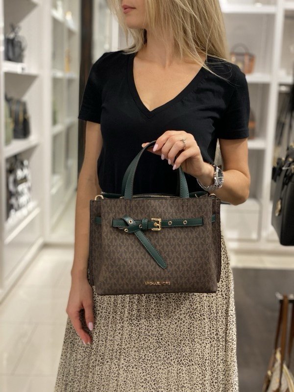 Michael_Kors Signature Emilia Brown Green Shoulder Bag With Premium Box Packaging & Accessories (8611)