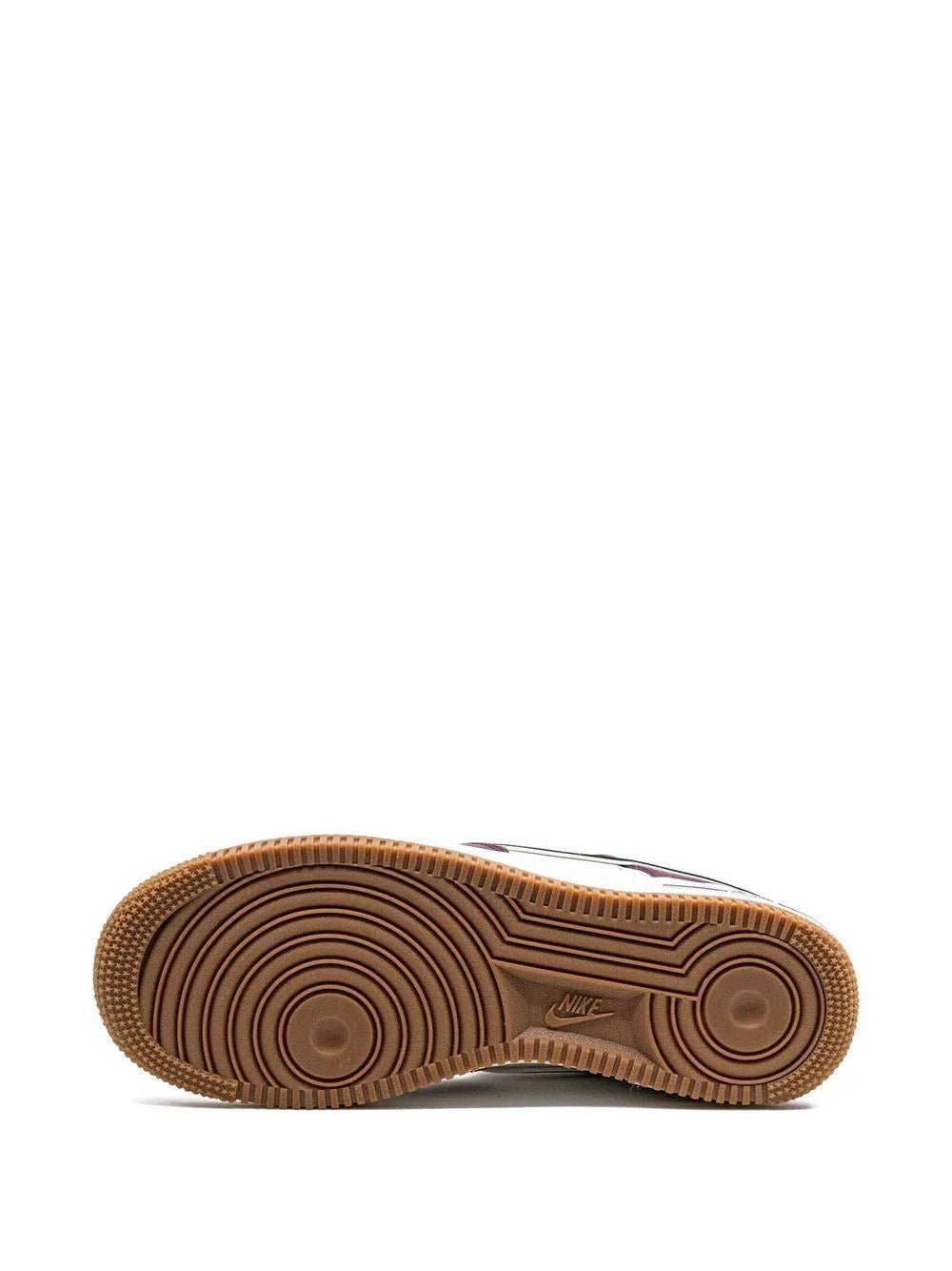 A heritage silhouette, the Air Force 1 Low is presented in contrasting Sail and Night Marron tones here. This model features the classic low-top silhouette, enhanced by a Swoosh logo on the sides, and sits atop a white rubber sole and a gum outsole.